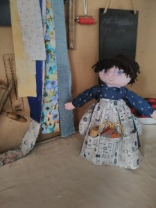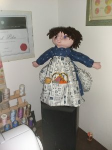 Anyway, as you can see, she is making herself jolly useful around the sewing room and the studio, holding bits and bobs, and being a nice cheerful presence.
