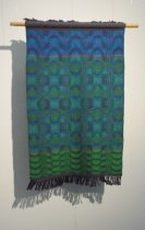 This represents most of a room full of woven hangings on the theme When waves collide, hand woven in cotton by Theo Wright.