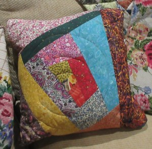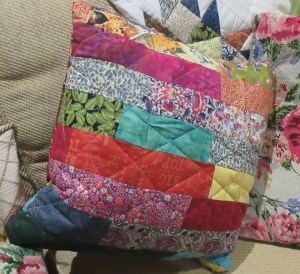 , so I’ve sewn together some 2 1/2 inch strips, quilted with random lines. I think the two sides of this cushion work well together.