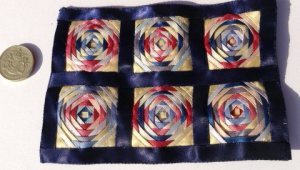 Mostly, I’m very pleased with the way this turned out. I had a little trouble with the last two rounds of triangles. I have a feeling that the geometry wasn’t quite right, and it would have been better to cut the fabric a little larger. But it could easily be me not being accurate enough. It doesn’t matter, because I can live with the result. I have to look quite hard to see the problem.