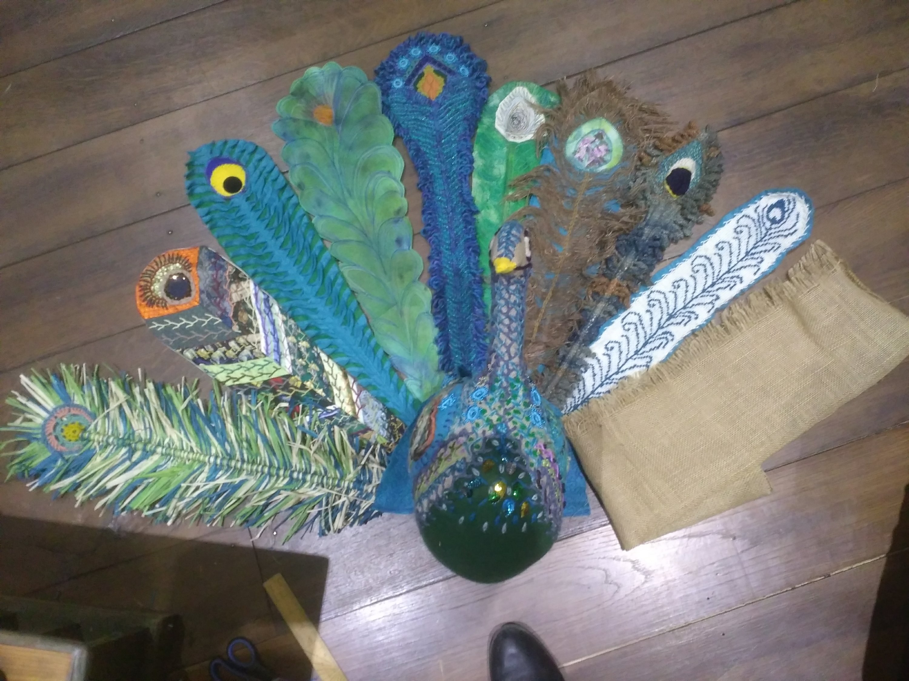 An arial view. The hessian on the right is there to help work out how many more feathers I will need