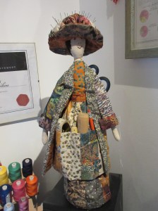 Of course, pin holders don’t have to be the traditional cushion. You could make a more complicated sewing organiser, like the wine bottle doll shown here. You can buy the pattern from my shop.
